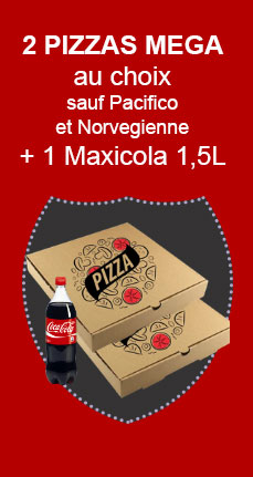 Maxima : tomate, mozza, viande hachée, chorizo, jambon, champignons, poivrons